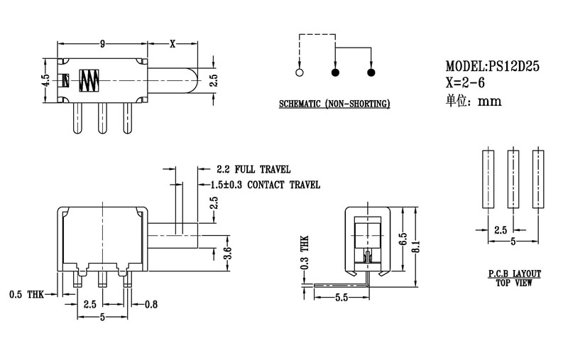 按鍵撥動開關技術參數: