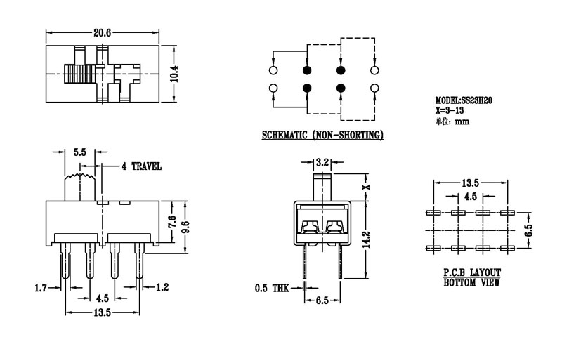 按鍵撥動開關技術參數: