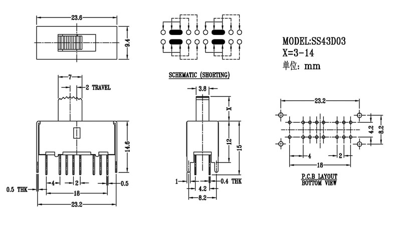 YX-SS-43D13是一款立式撥動(dòng)開(kāi)關(guān)-三檔滑動(dòng)開(kāi)關(guān)-帶定位柱切換開(kāi)關(guān)廠家結(jié)構(gòu)牢固,多檔位,撥動(dòng)力度均勻檔位感好,廣泛用于玩具電話機(jī)收音機(jī)家用電器等產(chǎn)品!