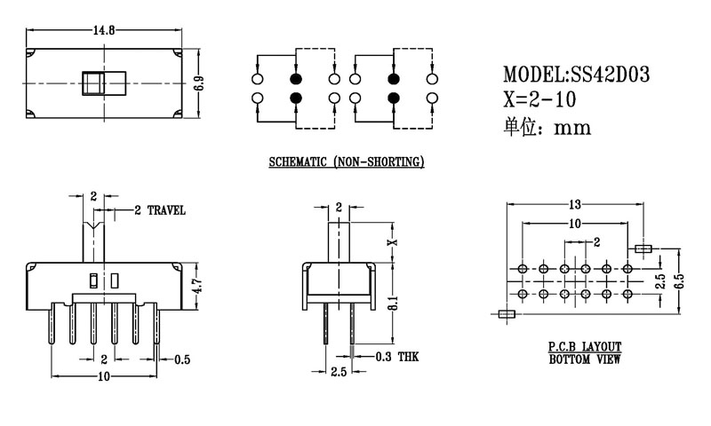 微型撥動開關技術參數: