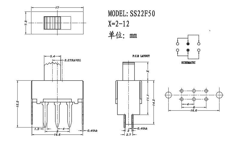 微型撥動開關技術參數:
