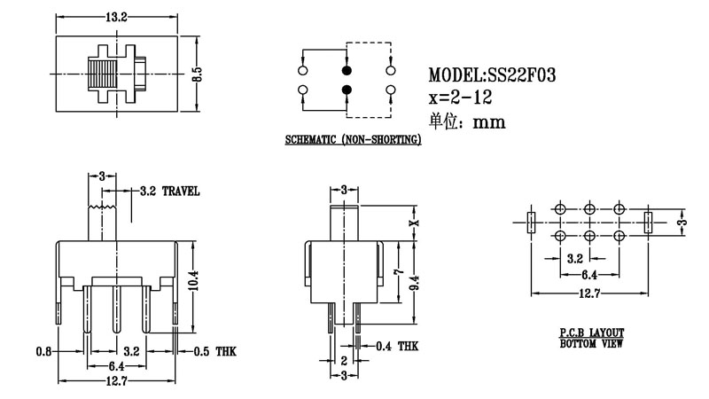 微型撥動(dòng)開關(guān)技術(shù)參數(shù):