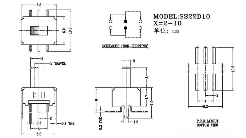 微型撥動開關技術參數: