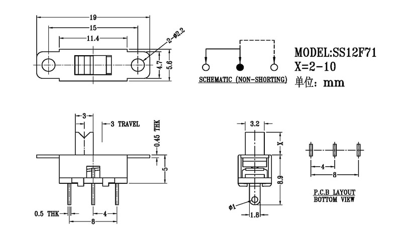 微型撥動開關技術參數: