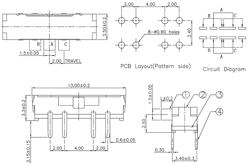 微型撥動開關技術參數: