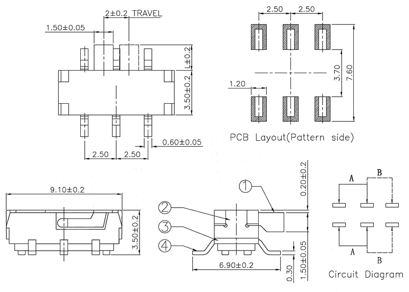 微型撥動開關技術參數: