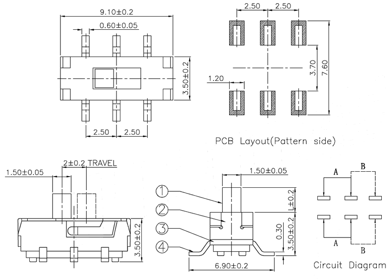 微型撥動開關技術參數: