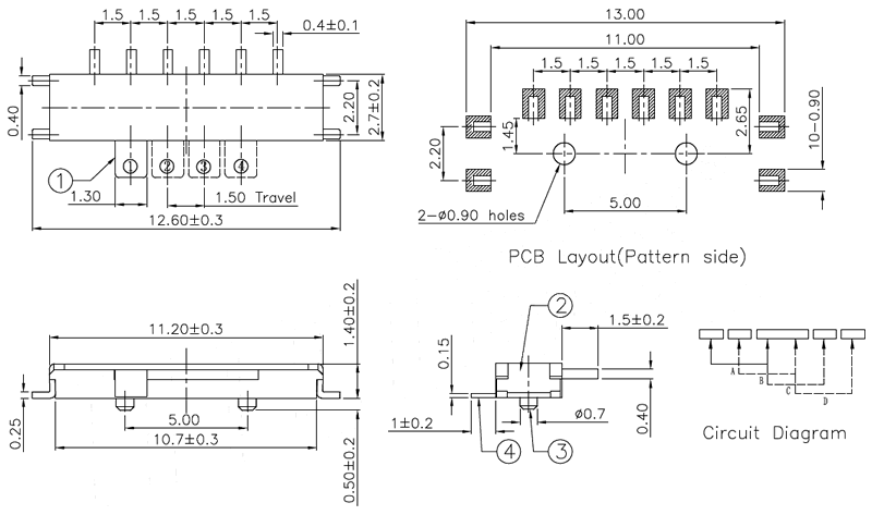 微型撥動開關(guān)技術(shù)參數(shù):