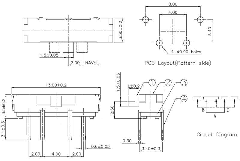 微型撥動開關(guān)技術(shù)參數(shù):