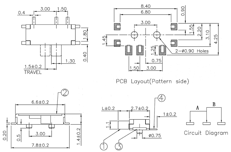 微型撥動開關技術參數: