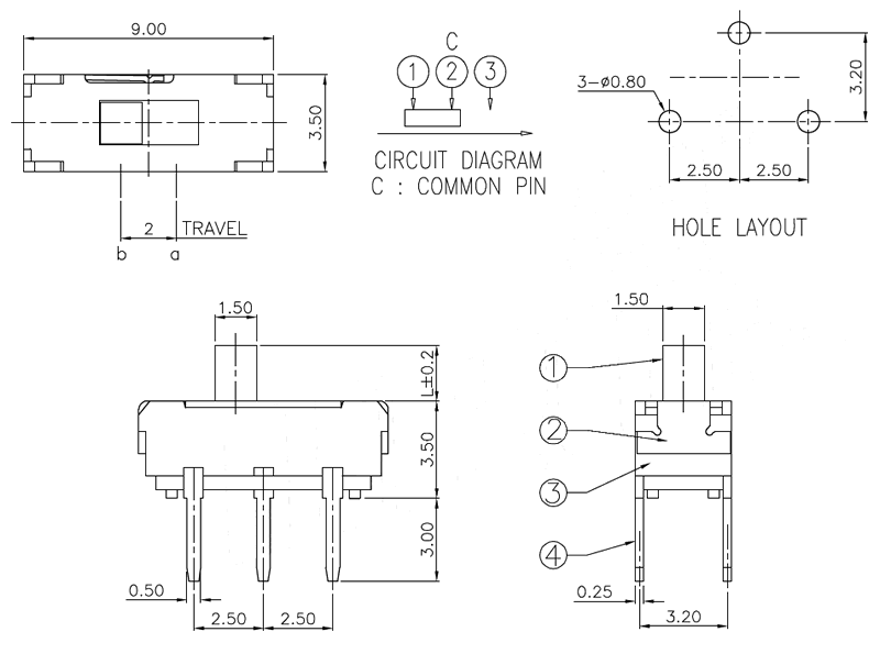 微型撥動(dòng)開關(guān)技術(shù)參數(shù):