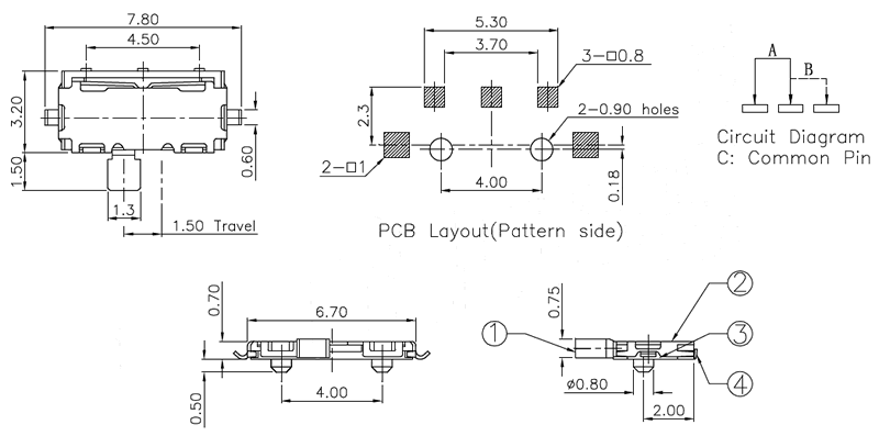 微型撥動開關(guān)技術(shù)參數(shù):